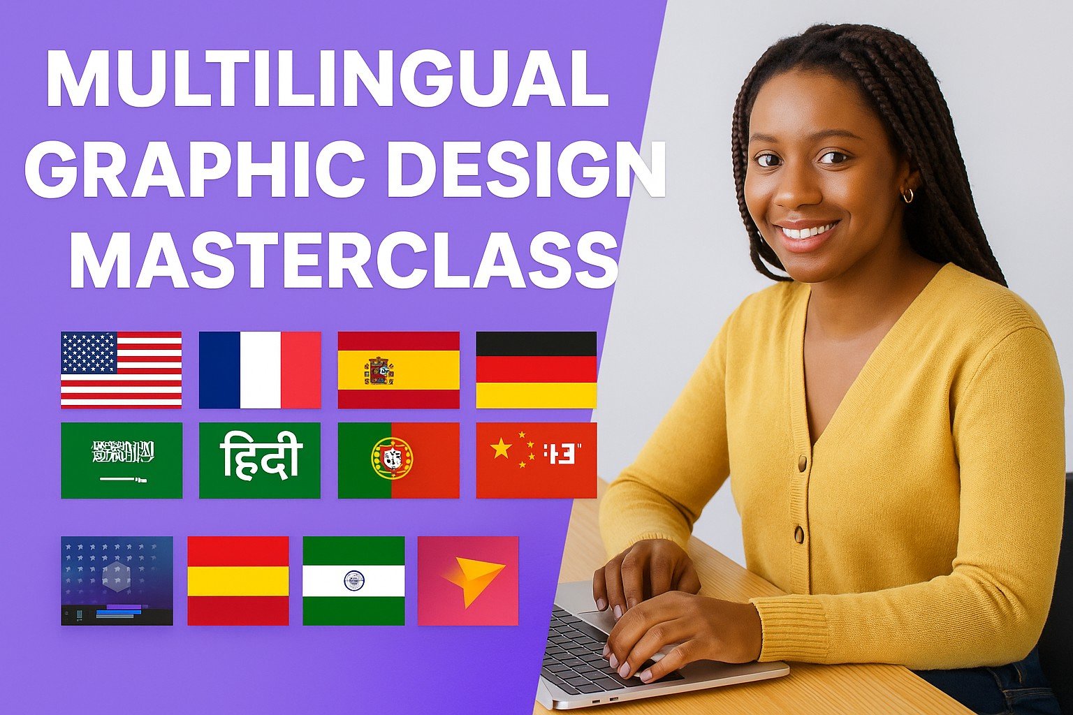 Learn how to design stunning graphics in multiple languages using AI tools, Canva, Photoshop alternatives, and multilingual workflows. Create logos, thumbnails, posters, flyers, ads, social media designs, and client projects — no design experience required.